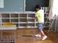 7月18日 大掃除 2024年7月18日 14時00分 今日の午後は水泳参観日の予定でしたが、雷注意報発表のため明日に延期となりました。そのかわりに明日に予定していた大掃除を行いました。人数が少ないために掃除する場所は限られますが、1学期間の汚れを落とすべく一人一人が一生懸命に担当場所を掃除しました。明日の13時45分から、水泳参観日となっています。保護者の皆様、地域の皆様、1か月半にわたって練習を頑張ってきた児童の泳ぎを見に、ぜひ御来校ください。