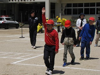 愛南警察署、船越駐在所、交通安全協会の皆様の御協力の下、交通安全教室を実施しました。基本的な内容を学習した後に、地域に出向いて歩行や横断の練習をしました。船越地域は道幅が狭く、歩行者と車両それぞれに相手を確認しづらい場所が多いため、横断前に止まること、手を挙げながら左右を確認することを繰り返し練習し、実生活で生かせるようにしました。また、運動場では、信号機のある交差点の横断の仕方も教えていただきました。交通ルールは、自分たちの命を守るためのものです。事故なく過ごせるよう、みんなでルールを守っていきましょう。御協力いただいた皆様、ありがとうございました。